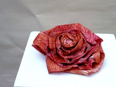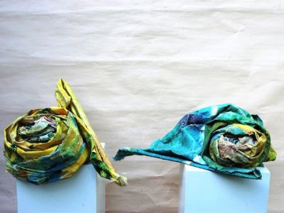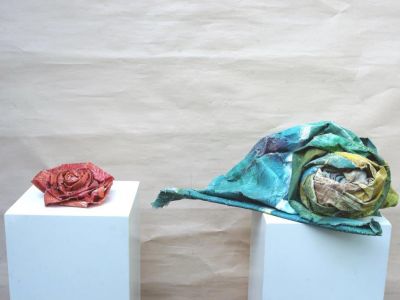 Im Frühjahr 2021 erwachte die Kreativität und ich fotografierte die Segel als Zeugen der Vergänglichkeit. Eine neue Komposition und begann dann, die Blüten daraus zu formen, „Geschwisterblüten“, die sowohl auf einer Stele, auf einer Basis oder an der Wand sehr präsent wirken. Danach entstand das farbige Blütenmeer.